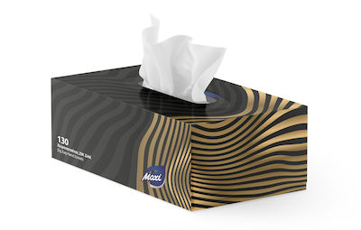 Maxi 130 Χαρτομάντηλα σε κομψό κουτί. Απαλά και ανθεκτικά, ιδανικά για καθημερινή χρήση σε σπίτι, γραφείο και ιατρείο